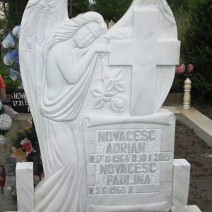 Cruce din marmură cu placă de granit încorporată și cruciuliță granit aplicată, având dimensiunile de 130x75x8.