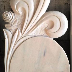 Cruce din marmură cu sculptură, având dimensiunile de 140x80x8.