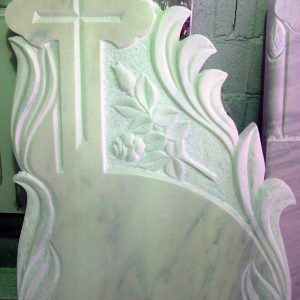 Cruce din marmură cu sculptură și cruciulițe granit aplicate, având dimensiunile de 130x120x10.